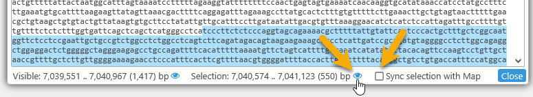 button at the bottom of the dialog to zoom the map to the currently visible sequence fragment. For example, you could scroll down in the box, and then zoom the map to the currently visible sequence fragment: