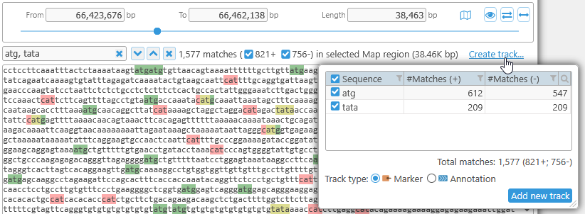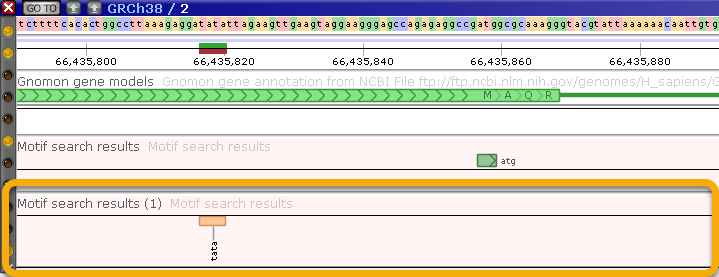 ...Then search for the "TATA" motif, and display it as a Marker track: