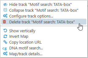 In addition to displaying the detected motifs on top of the ruler, you can display them in a temporary track. To do so, first click the Find all button to find the motifs (either in the currently selected region or on the entire map), then click the Create track link on the right-hand side: