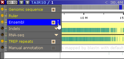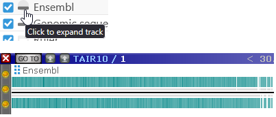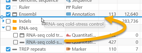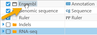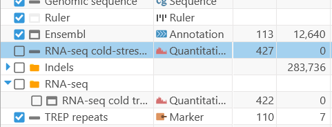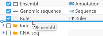 icons represent track groups. Tracks can be arranged into nested groups (a.k.a. folders); for example, it may be desirable to put all expression tracks into a single group, to make it easier to turn them on or off as a unit.