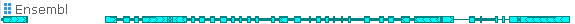 The thick bars marked with the "herringbone" pattern represent exons (the direction of the pattern points in the direction of the strand); the thin lines represent introns; and the dark bar across the top of the annotation represents the CDS (assuming the annotation has a CDS). Zoom in even further to display the protein translation for each transcript: