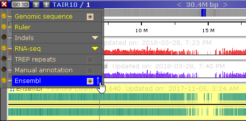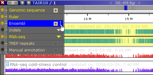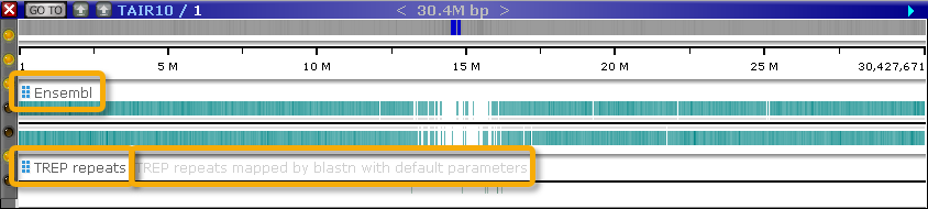 3: The drag icon indicates that the track can be moved. To do so, drag its label with the mouse, and drop it in the new location. For example, you can move the Ensembl track to the bottom of the map: