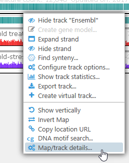 You can right-click a track to bring up its pop-up context menu. Every track will have a slightly different context menu, depending on the data the track displays; however, most tracks have the following menu items in common: