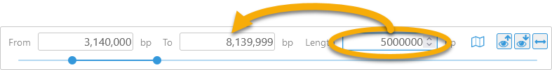Drag the range selection handles (with the left mouse button) to quickly change the starting and ending position of the selected map range. You can also enter an exact value in one of the textboxes at the top: From, To, and Length. For example, you could enter "5000000" into the Length textbox, and the To textbox (as well as the range sliders) will update to reflect the new range: