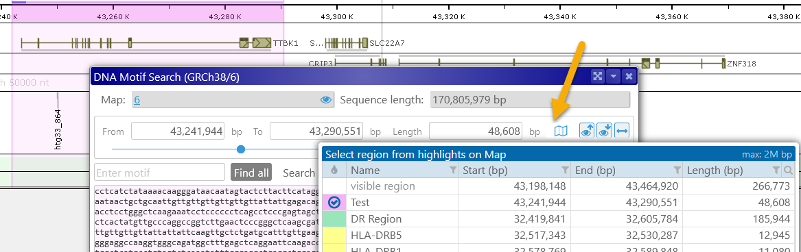 This control provides multiple ways to select a region on a map; for example, it is used in Export and DNA Motif Search.