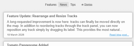 This tab displays recent blog posts from the Persephone blog. These blog posts usually describe new features, as well as new genomes and other data that have been loaded into the public instance of Persephone.